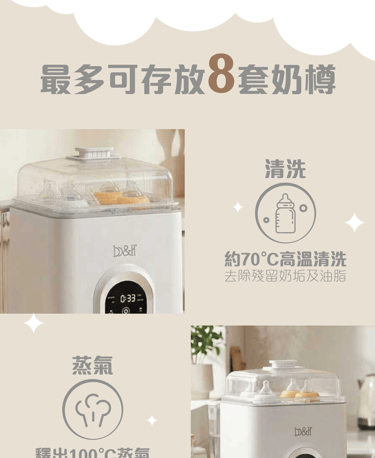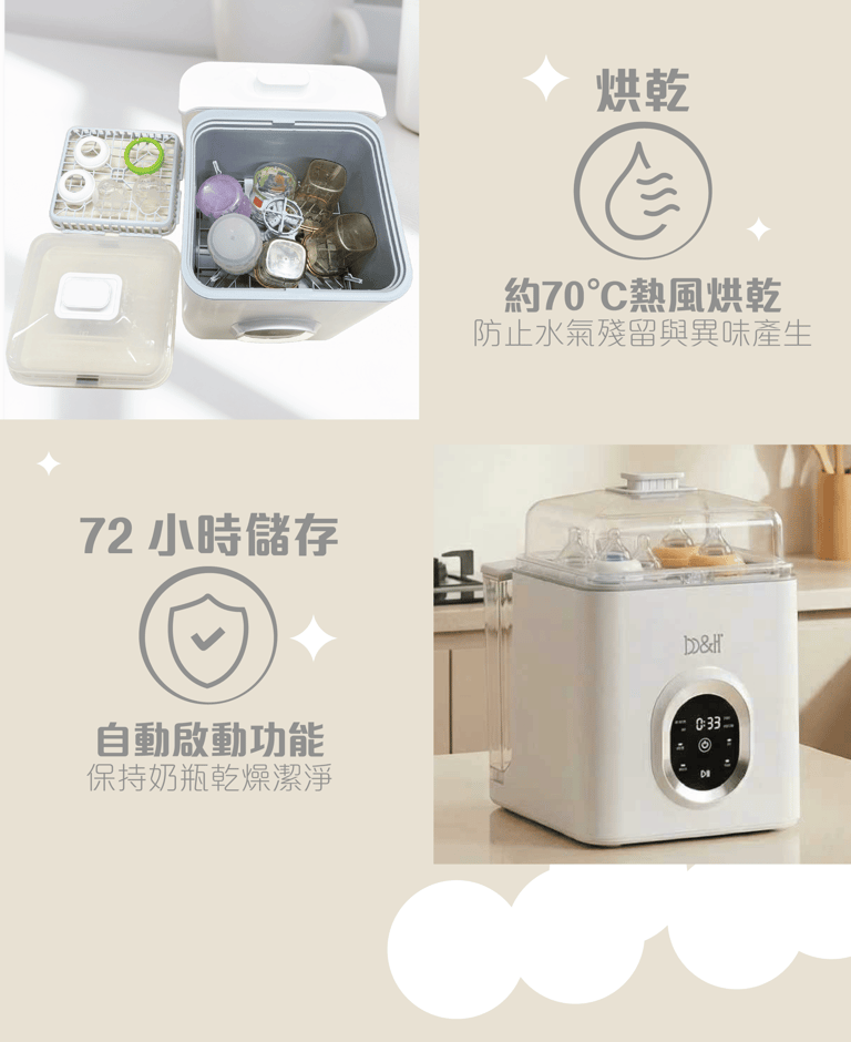 ‧ 可同時暖奶及媽媽補品‧ 5合1功能: 雙瓶暖奶|解凍|熱食|消毒|預設‧ 可調溫度/時間‧ 精準控溫