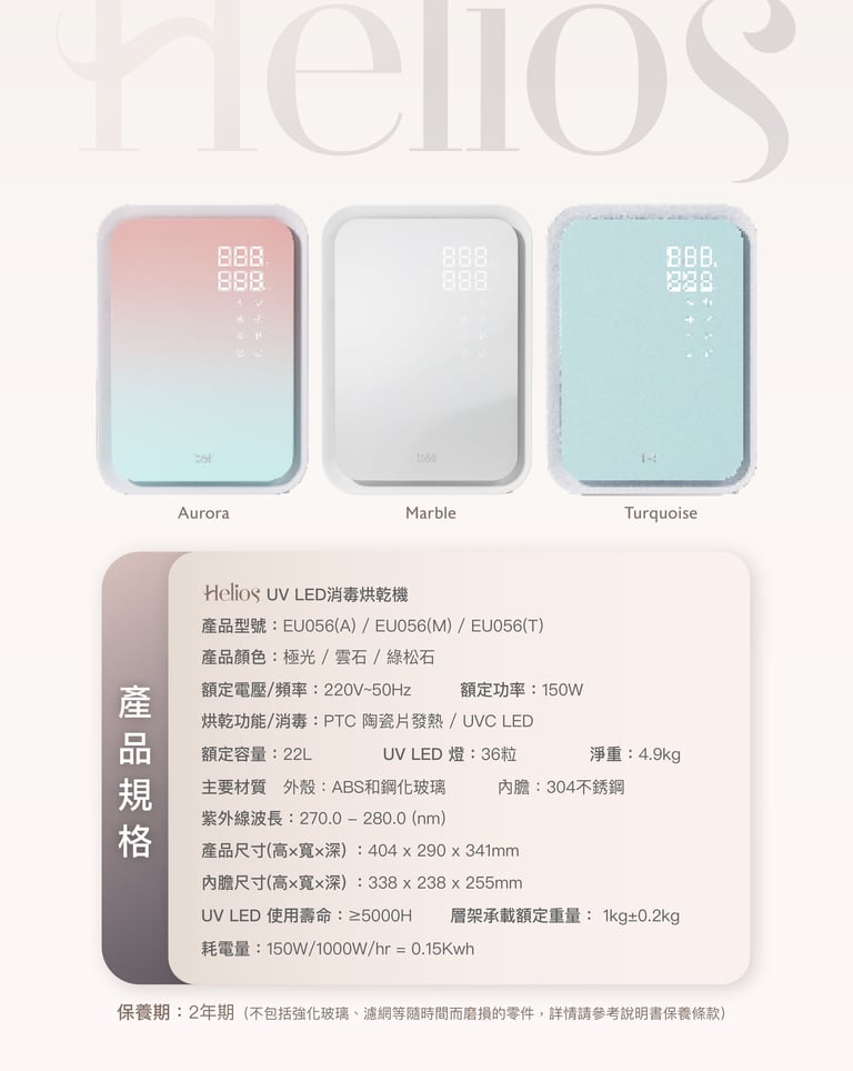Helios UV LED消毒烘乾機 [2年保養]