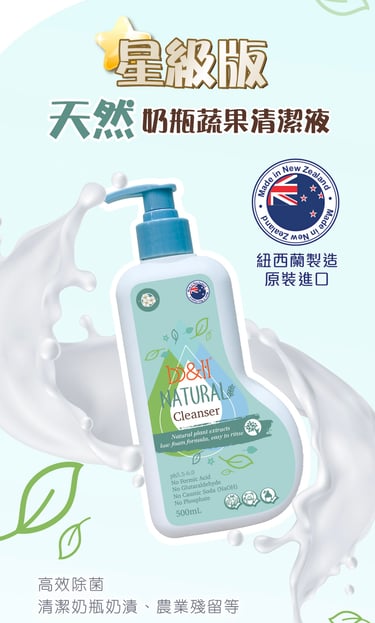 紐西蘭白茶樹萃取成份,有效殺菌抗黴菌適用於清潔奶瓶、奶嘴、餐具、玩具及蔬果不含磷酸、甲酸、氫氧化鈉、戊二醛、色素、香精、酒精、防腐劑等有害成分