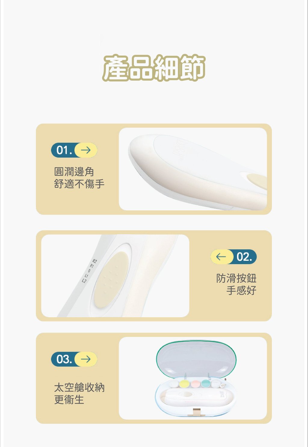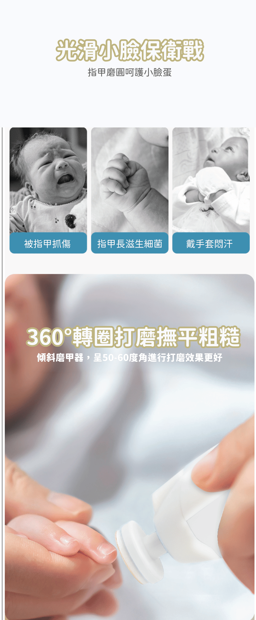 - 360° Rotating Grinding Heads: Conforms to the shape of your baby’s nails to gently smooth the edges after trimming, without causing harm