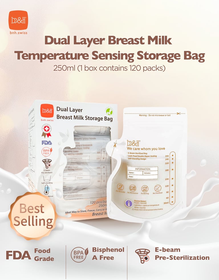 b&h Dual Layer Breast Milk Temperature Sensing Storage Bag 250ml
