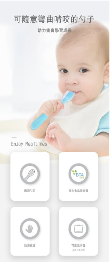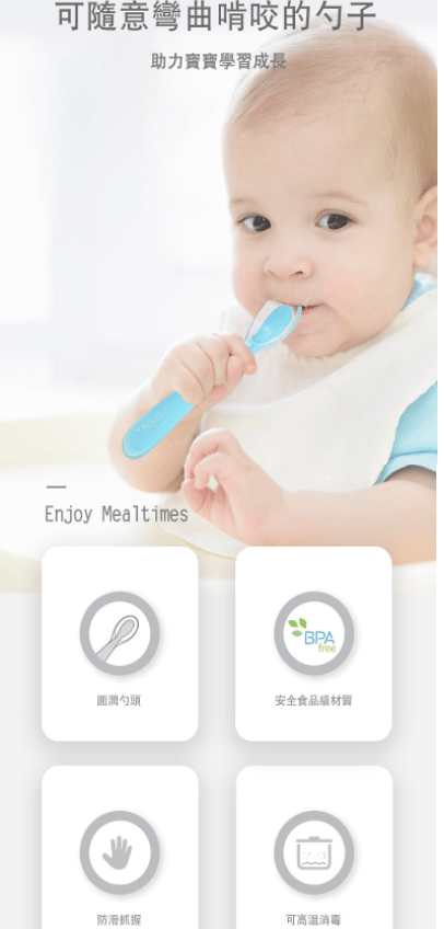 ‧ The flexible learning spoon makes it easier for babies to learn to eat.