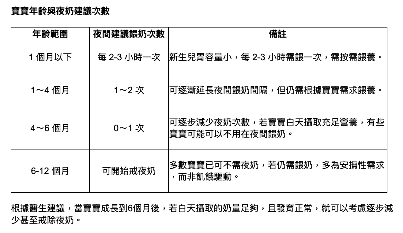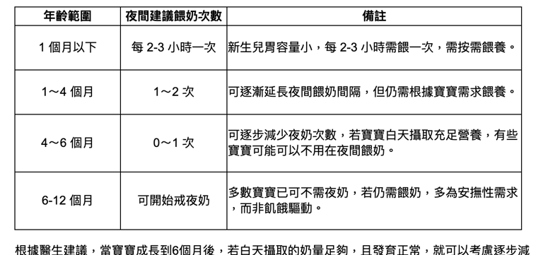 根據醫生建議,當寶寶成長到6個月後,若白天攝取的奶量足夠,且發育正常,就可以考慮逐步減少甚至戒除夜奶。