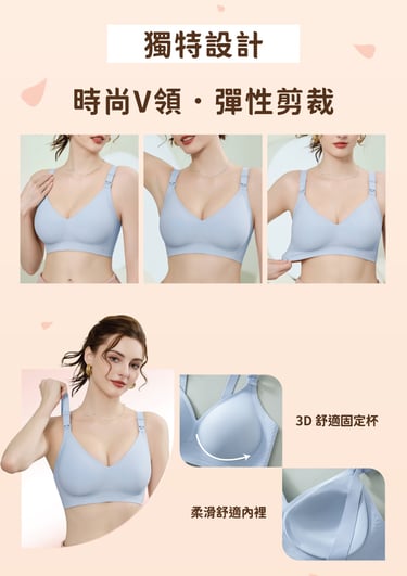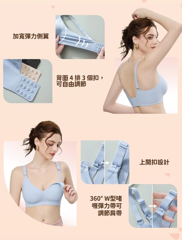 -寬肩帶和寬弹力側翼,加強提托,防止胸部側漏,U型美背釋放壓力