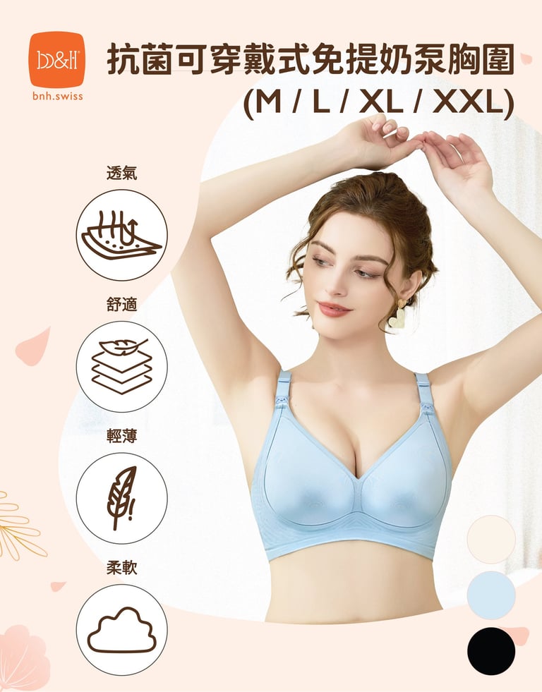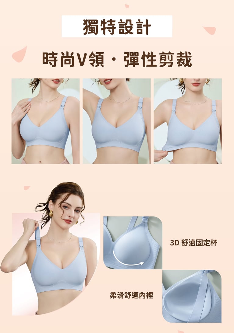 -360° W型啫喱彈力帶貼合胸部設計,確保漲奶時不會太緊