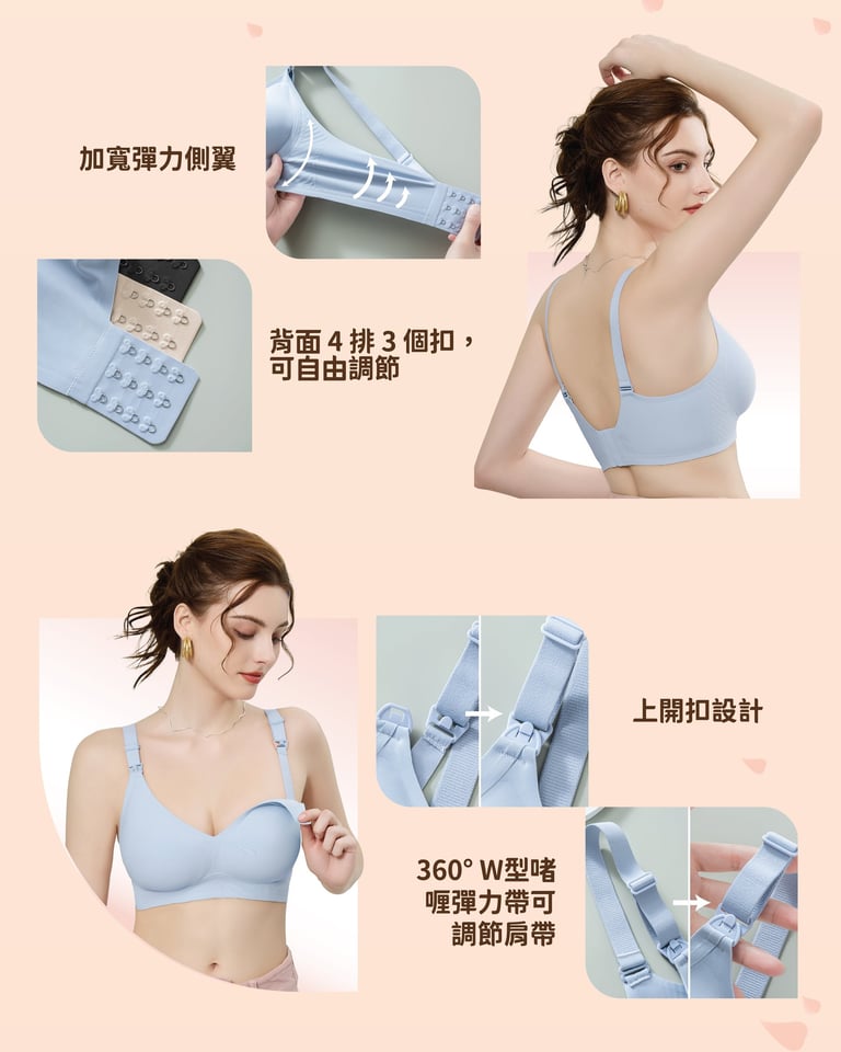 -上開扣及可調節肩帶,專為孕期/哺乳期媽